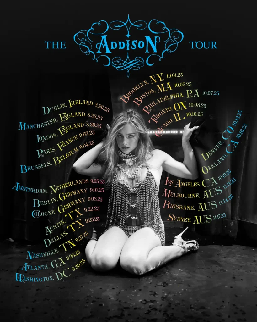 Both the album and the tour are branded as the Addison Tour because Rae’s sticking with her first name now and leaving the last name behind after this release.